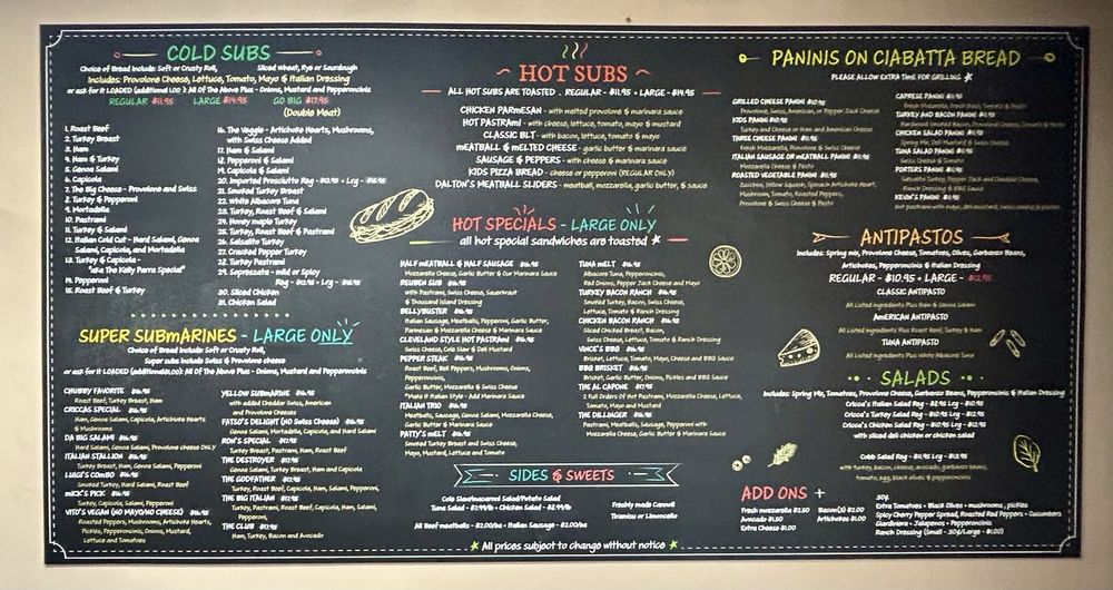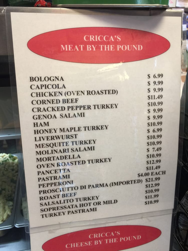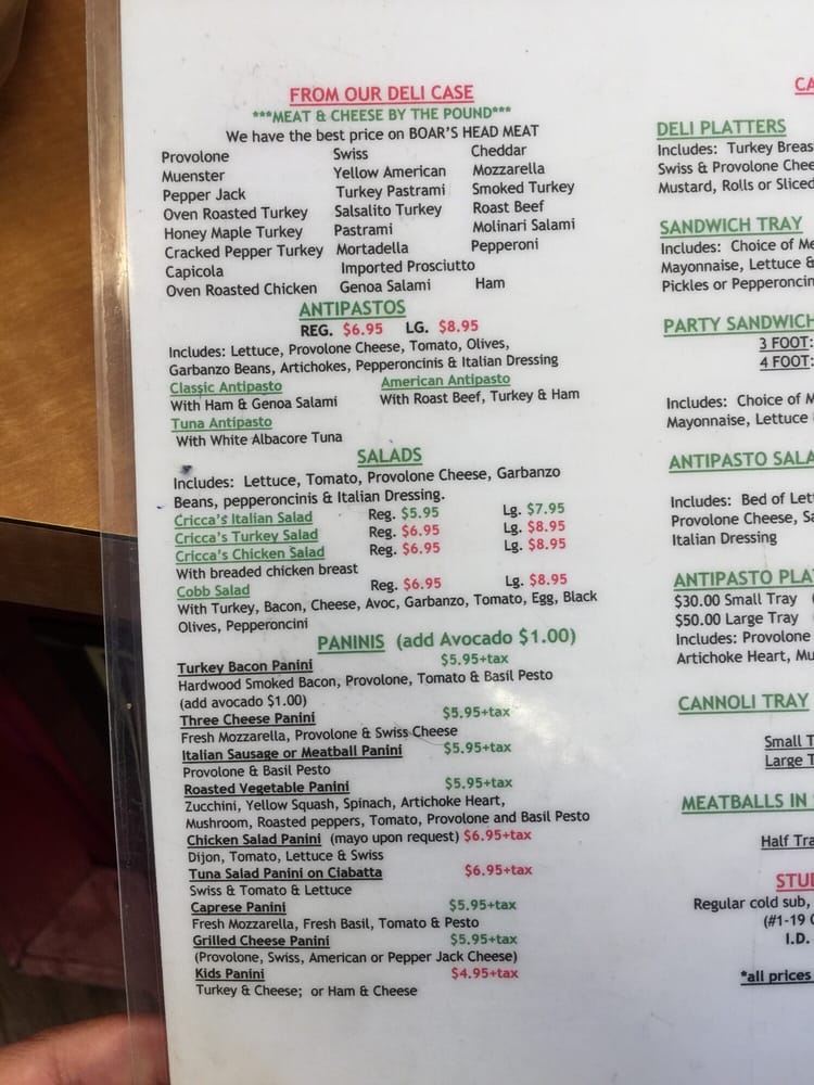 Cricca’s Italian Deli & Subs Menu (Update 2025)